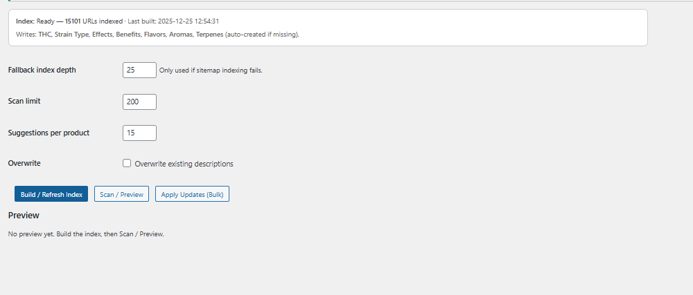 Strain Sync automatically matches your WooCommerce cannabis products with the correct strain data, writes a custom short description and full description, and imports all strain details as product attributes.